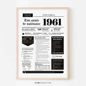Affiche année de naissance 1961 – Cadeau anniversaire 64 ans