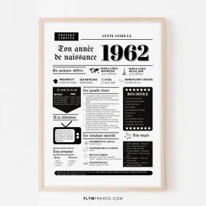Affiche année de naissance 1962 – Cadeau anniversaire 63 ans