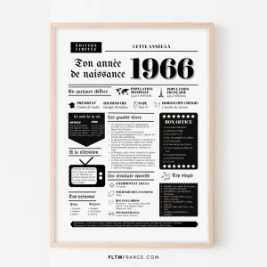Affiche année de naissance 1966 – Cadeau anniversaire 59 ans