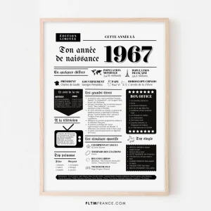 Affiche année de naissance 1967 – Cadeau anniversaire 58 ans