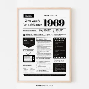 Affiche année de naissance 1969 – Cadeau anniversaire 56 ans