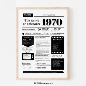 Affiche année de naissance 1970 – Cadeau anniversaire 55 ans