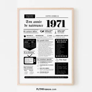 Affiche année de naissance 1971 – Cadeau anniversaire 54 ans