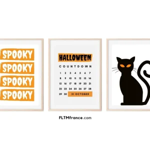 3 affiches Halloween originales (calendrier, chat…) – Décoration Halloween