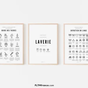 3 affiches Laverie, entretien du linge et guide des taches