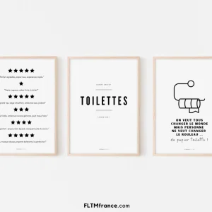 3 affiches Toilette, Notes étoiles et Changer papier toilette – Poster humour WC